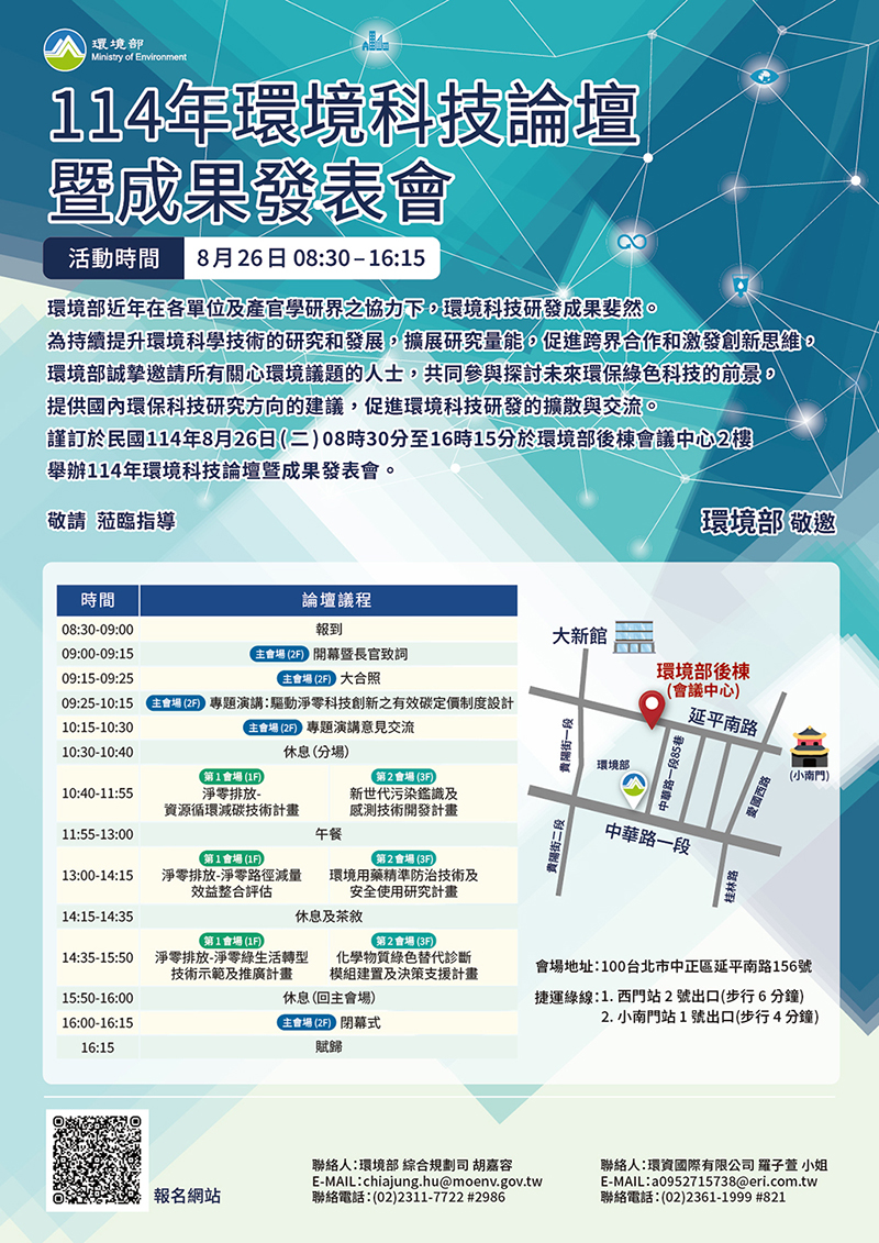為持續提升環境科學技術的研究和發展,擴展研究量能,促進跨界合作和激發創新思維,環境部誠摯邀請產、官、學、研界的專家們共同參與探討未來環保綠色科技的前景,同時提供國內環保科技研究方向的建議。